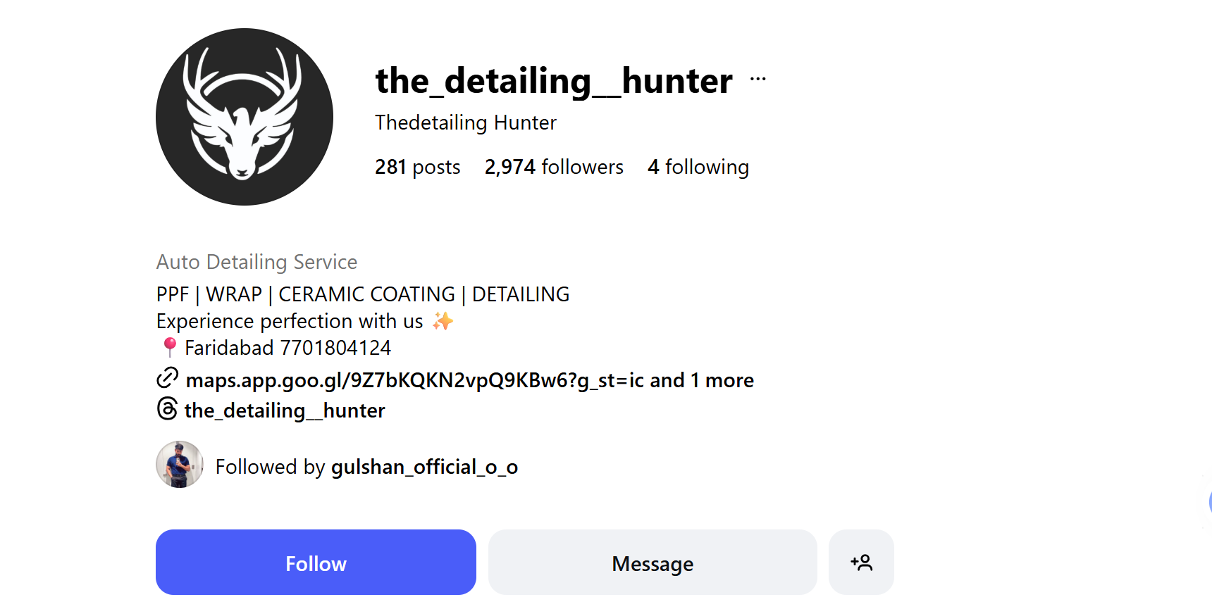 GurgaonExcellent detailing service! The team is professional, punctual, and very polite. My car literally looks brand new every time I visit The Detailing Hunter.